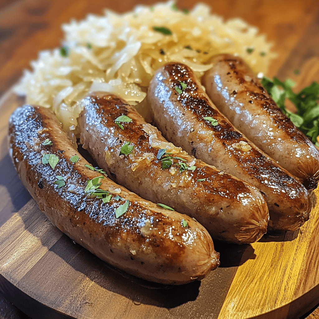 Keywords: Beer-Brined Bratwurst, Sauerkraut, German Cuisine, Grilled Sausages