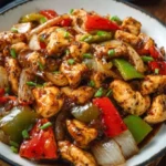 The air fills with an intoxicating aroma—a delightful mingling of savory chicken, fragrant garlic, and the unmistakable kick of freshly ground black pepper. As it sizzles in the pan, the eager anticipation builds, promising a dish that is both comforting and exciting. Each piece of chicken transforms into a tender morsel, glossy with a tantalizing sauce that cloaks it like a warm, inviting blanket. The colorful peppers add a vibrancy that beckons the eyes, while the balance of sweet, spicy, and umami flavors create a harmonious symphony on the palate.