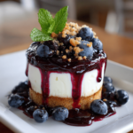 A delicious and refreshing dessert combining the flavors of blueberry and lemon in a creamy cheesecake parfait.
