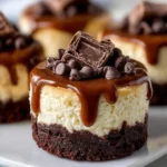 Decadent mini cheesecakes with a rich brownie base, creamy cheesecake filling, and a glossy chocolate ganache topping.