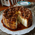 Once baked, remove the cheesecake from the oven and let it cool in the dish. Cooling is essential, as it allows the flavors to meld together beautifully. After about 30 minutes, you can slice and serve it warm or chill it in the fridge for a refreshing treat later. Either way, it’s delicious!
