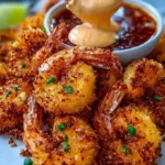 Delicious crispy coconut shrimp served with a creamy sweet chili mayo, delivering a tropical flavor sensation.