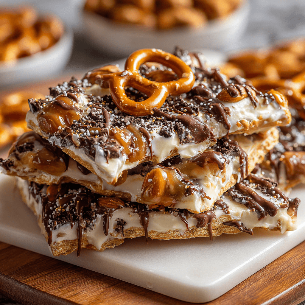 Cookies & Cream Pretzel Bark is a delightful combination of sweet and salty flavors, featuring crunchy pretzels coated in creamy white chocolate and sprinkled with crushed cookies.
