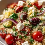 As you prepare to toss everything together, the aromatic scent of fresh parsley and zesty lemon wafts through the kitchen, promising a refreshing experience. You can almost taste the light drizzle of olive oil that will soon coat every morsel, adding a velvety richness that ties it all together. This salad not only looks like a vibrant showcase of colors but also teems with fresh sensations, from the satisfying chewiness of the couscous to the creamy crumble of feta that elevates this dish into something truly irresistible.