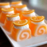 Delightful rollups combining vibrant orange Jello and creamy whipped cream with a hint of vodka, perfect for gatherings.