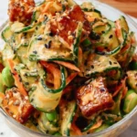 This bowl embodies the essence of light and refreshing dish—beautifully layered yet simple in preparation. Whatever the occasion, be it a leisurely lunch, a picnic gathering, or a vibrant weeknight dinner, the Creamy Asian Cucumber Salad Bowl acts as both a palate pleaser and a nourishing option. Glistening with sesame seeds and sprinkled with optional nori flakes, every layer reveals a treasure trove of textures: the crunch of fresh vegetables, the softness of the avocado, and the satisfying chew of crispy baked tofu that lend a deep, savory element to the mix. You may find it difficult to share; this salad stands out as a centerpiece with its crispness and creaminess, showcasing the best of plant-based ingredients.