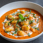 A comforting and creamy tomato soup with tender gnocchi, perfect for chilly days.