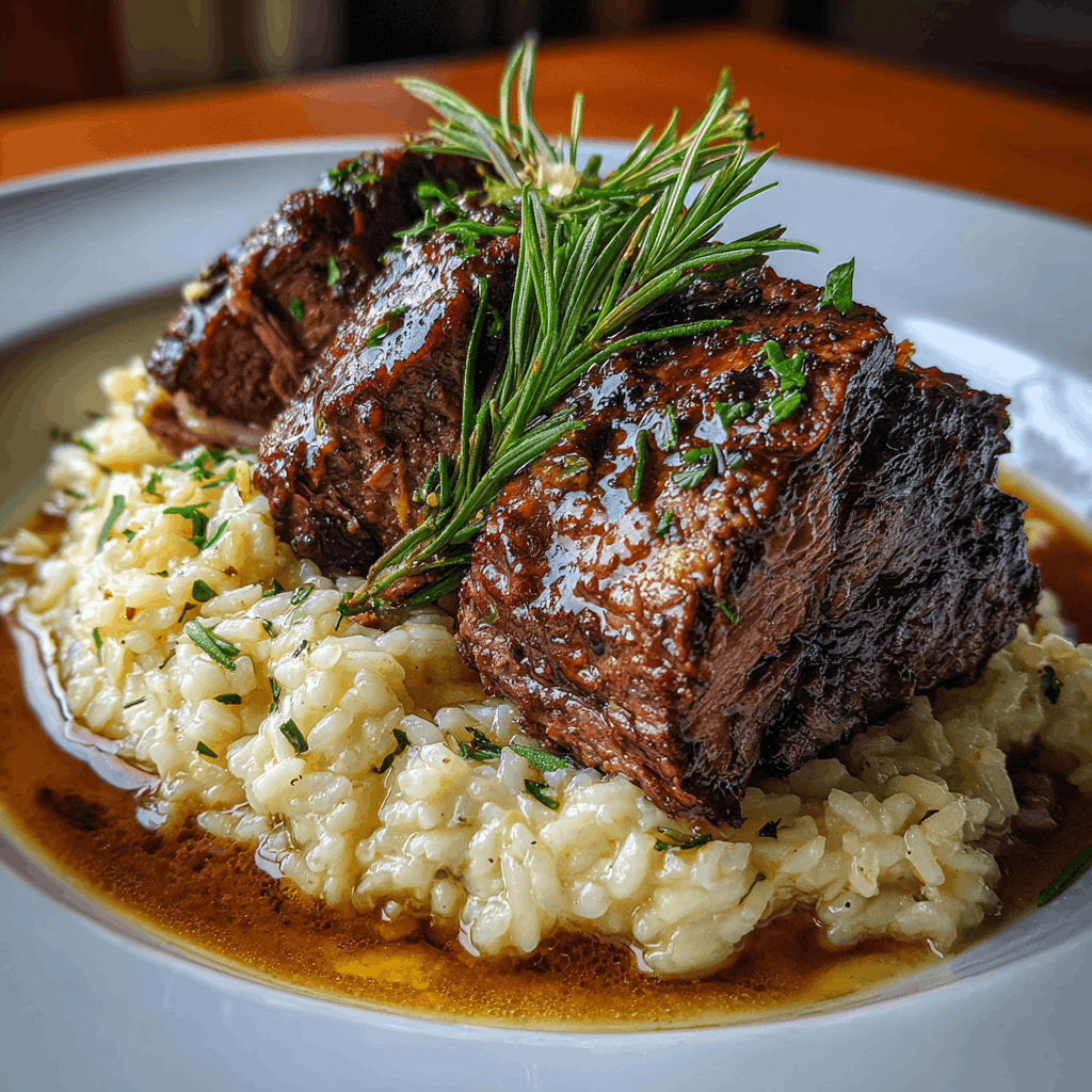 A delightful Italian pot roast paired with creamy Parmesan risotto, perfect for a memorable dinner.
