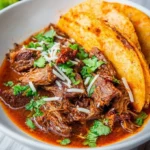 Serve and enjoy: Spoon the luscious birria into warm corn tortillas, garnishing with chopped onions, fresh cilantro, and shredded cheese. Each bite will be an explosion of flavor and comfort that you won’t want to end.