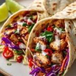 Store leftover wraps in an airtight container in the refrigerator for up to 2 days. To reheat, consider warming the chicken in a skillet over low heat to maintain moisture, while enjoying fresh crunch in the slaw. If you’ve prepped extra slaw beforehand, add it just before wrapping it up again to keep everything crisp.