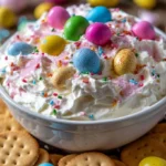 Top the dip with festive Easter candies, arranging them creatively for a cheerful finish that draws everyone closer.