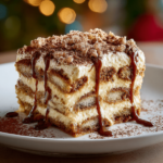 Finally, it’s time to serve your masterpiece! Before serving, dust the top with cocoa powder for a lovely finish. If you’re feeling fancy, sprinkle a little extra nutmeg on top. This adds a festive touch and a hint of spice. Slice it up, and watch your family and friends delight in this Eggnog Tiramisu!