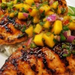 - Serve: Plate the chicken and generously spoon the mango salsa over the top. Pair with rice, salad, or tortillas.