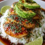 - Serve: Plate the chicken over rice and top with slices of avocado, drizzling with any remaining marinade.