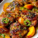 The sun sets, casting a golden glow across the kitchen as the tantalizing aroma of Jalapeno Peach Chicken wafts through the air. A beautiful symphony of sweet and heat dances around you, awakening your senses, whetting your appetite, and creating an air of celebration that transforms an ordinary evening into something extraordinary. As the vibrant colors of juicy peaches flicker against the rich hues of perfectly seared chicken thighs, you can almost taste the crunch of the crispy exterior and the succulent tenderness that lies within. With each bite, you experience an explosion of flavors that harmonize beautifully; the fiery kick of jalapenos plays against the sweet, juicy softness of ripe peaches, creating a melody of taste that lingers on your palate long after the last forkful.
