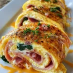A delightful low-carb breakfast roll-up filled with crispy bacon or sausage, tender spinach, and creamy cheese, all wrapped in perfectly cooked eggs.