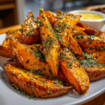 Once they’re done, remove the wedges from the oven and let them cool slightly. This is the hardest part—waiting to dig in! Serve them warm, and feel free to pair them with your favorite dipping sauce. Enjoy every bite of these delightful Maple Dijon Glazed Sweet Potato Wedges!