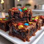 M&M Brownies Chocolate Fudge are rich, fudgy brownies topped with colorful M&M candies, making them a delightful treat for chocolate lovers.