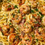 Imagine a plate full of perfectly cooked linguine or spaghetti, glistening with a sauce that has just the right amount of creaminess without feeling heavy. The plump, juicy shrimp, kissed by the heat of the pan, add a delightful crunch and pop, releasing their savory juices into the comforting embrace of garlic and butter. This is not just a meal; it’s an experience, a warm hug on a plate, begging to be shared with loved ones or savored solo on a quiet evening. As the sauce coats every noodle with its velvety goodness, you’re bound to feel a wave of contentment wash over you—each forkful promising a burst of flavor that tingles the palate with every delectable mouthful.