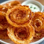 Drain and Serve: Using a slotted spoon, lift the hot onion rings from the oil and place them on a paper towel-lined plate to drain excess oil. Serve warm with your favorite dipping sauce, and watch the smiles unfold as your loved ones dig in.