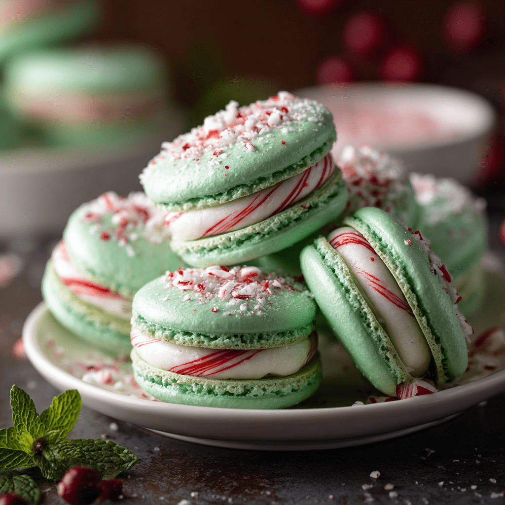 Keywords: Peppermint Macarons, Holiday Treats, French Desserts