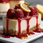 The experience of enjoying this cheesecake goes beyond flavor—it feels like a celebration. Whether it graces your table during a festive gathering or becomes the highlight of a quiet afternoon, Raspberry Lemon Cheesecake brightens the mood. Served chilled, it is a perfect remedy for the heat of summer, while its striking appearance makes it a stunning centerpiece for holiday feasts. The unmistakable contrast of textures—the crumbly graham cracker crust, the silky filling, and the plump raspberries—invites you to indulge one delightful bite after another. Just when you think you’ve had enough, the lingering taste of lemon compels you to come back for more.