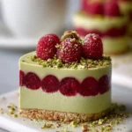 With each bite, the sweet-tart brilliance of the raspberries mingles with the rich, creamy pistachio, enveloping your taste buds in a sumptuous embrace. The creaminess of the mousse melts effortlessly, while the crumbly crust adds a satisfying textural contrast, making this cake a true showstopper at any gathering. Whether it’s a sunny afternoon tea or an elegant dinner party, this dessert elevates any occasion, transforming an ordinary moment into an extraordinary culinary experience.