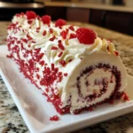 Keywords: Red Velvet Cake Roll, Cream Cheese Filling, Dessert, Baking
