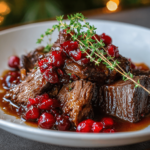 A comforting and flavorful slow-braised beef roast glazed with a tangy cranberry balsamic sauce.