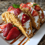 Strawberry Crunch Cheesecake Tacos are a delightful dessert that combines the flavors of creamy cheesecake and fresh strawberries in a fun taco shape.
