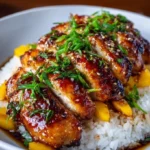 Prepare to experience symphonies of taste. The aroma of ginger and garlic wafts through your kitchen, mingling with the sweet, sunny scent of ripe mangoes. It calls family and friends to gather around your table, eager to share in the excitement of this dish. The delightful crush of sesame seeds paired with the bright crunch of green onions offers a visual and textural contrast that excites the palate. Just one bite and you’ll savor the juicy chicken enveloped in that glaze, a marriage of flavors that feels both exotic and comforting at the same time. Each moment spent eating these twists resonates with joy, transforming any meal into a memorable feast.